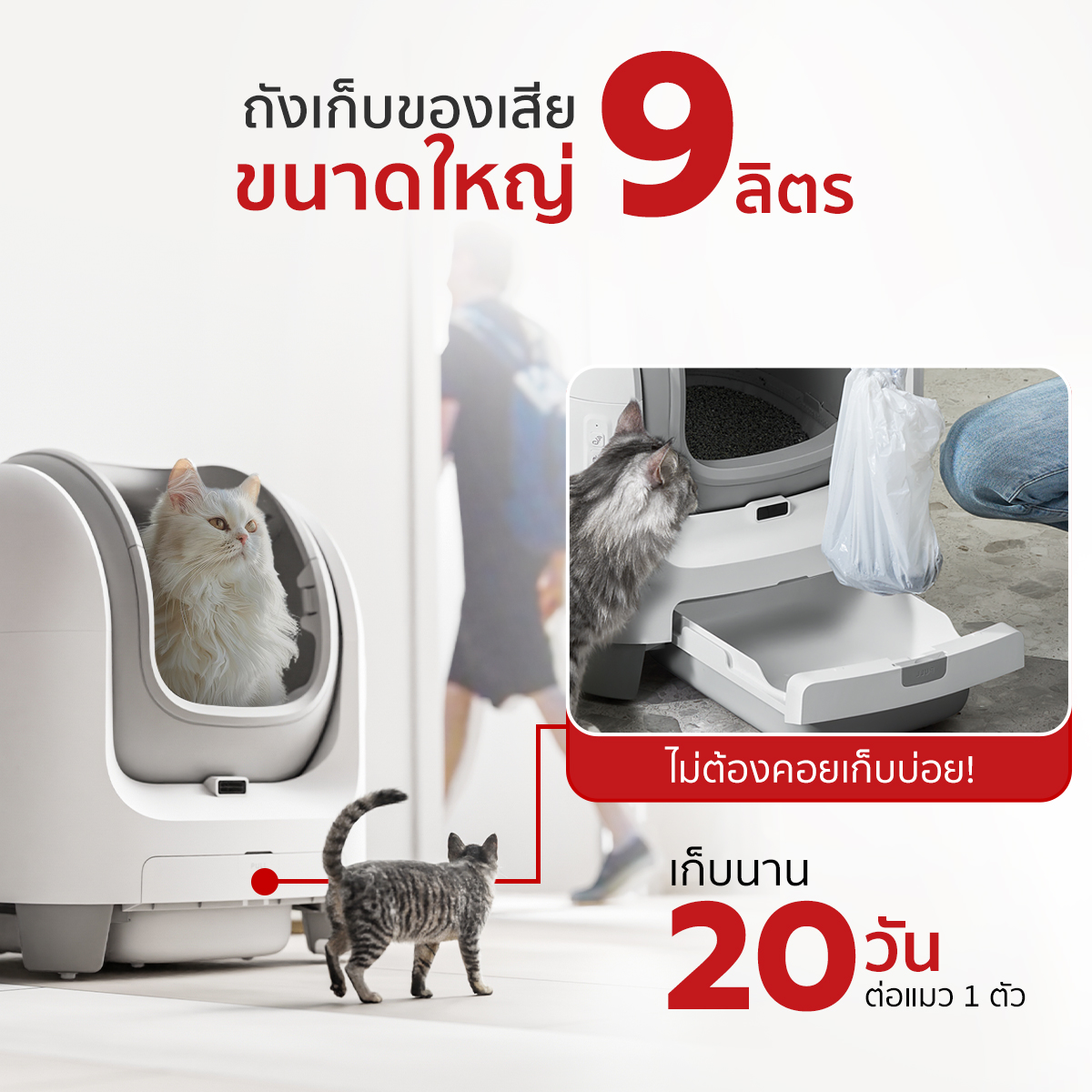 🚩 ที่เก็บของเสียขนาดใหญ่ 9 ลิตร แมว 1 ตัวใช้ได้นาน 20 วัน