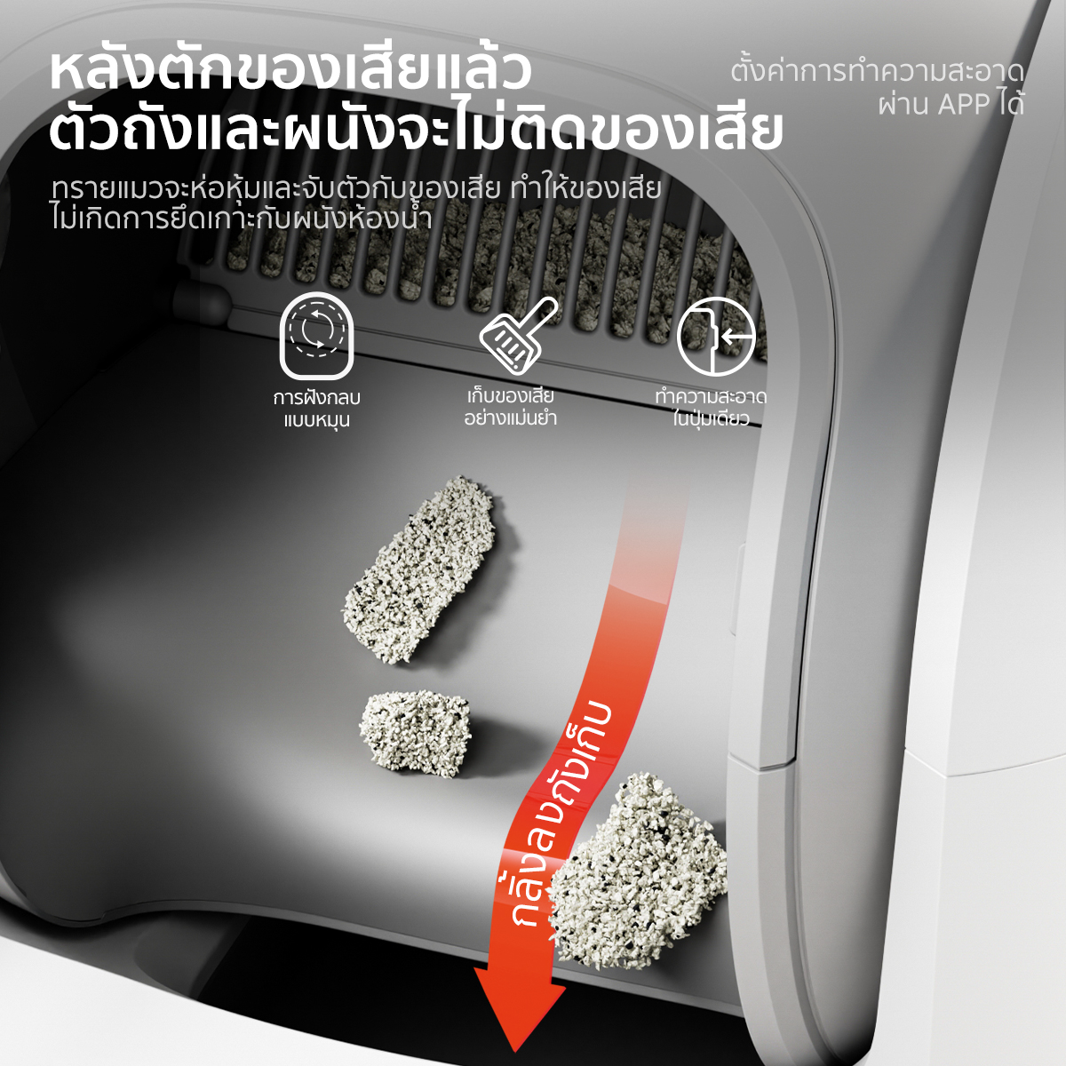 – เซ็นเซอร์น้ำหนัก 4 ชุด หยุดการทำงานอัตโนมัติเมื่อแมวเข้าไปในเครื่อง