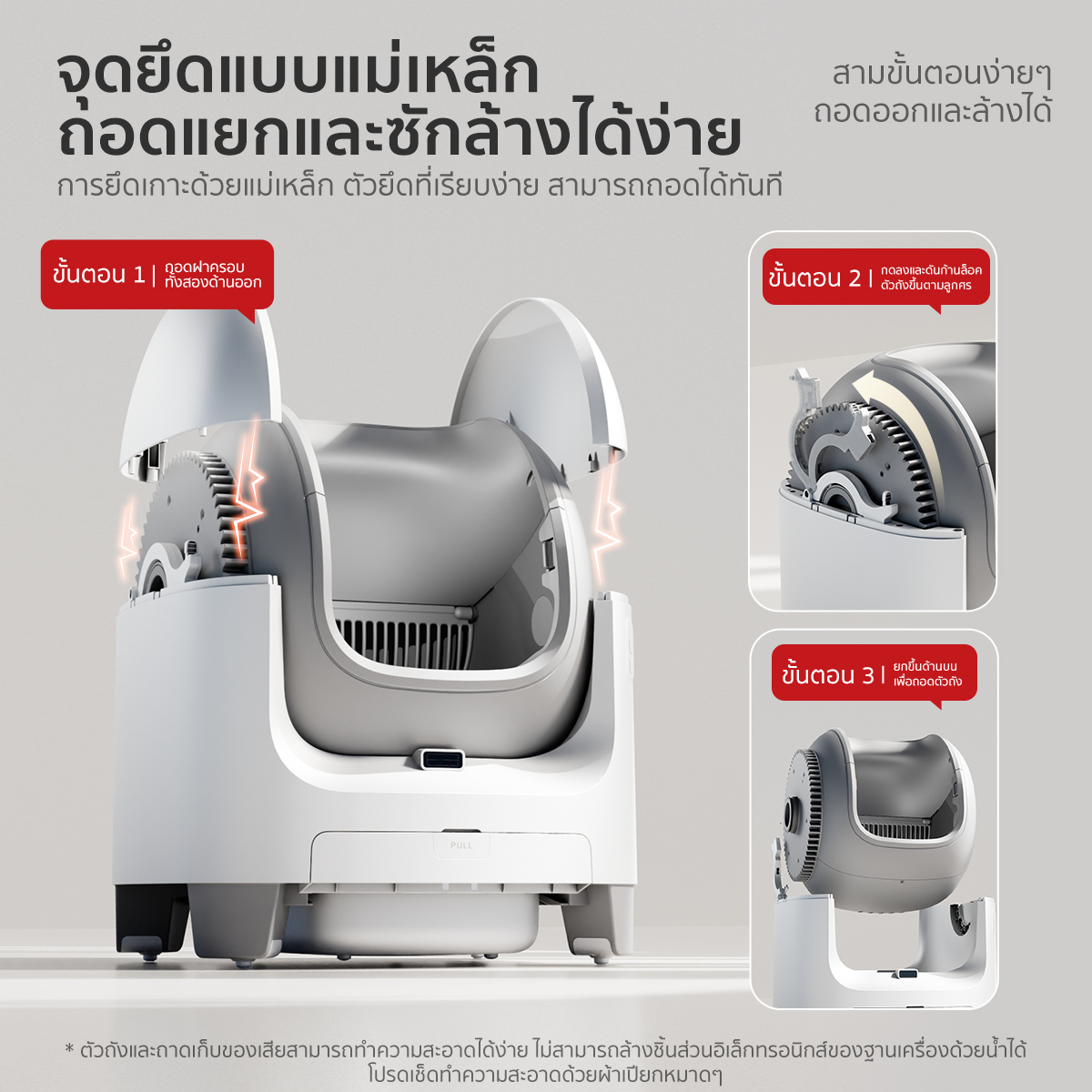 – เซ็นเซอร์ป้องกันการหนีบ 1 ชุด เมื่อแมวเข้าไปด้านหลังเครื่อง ถังหมุนจะหมุนกลับอัตโนมัติ