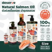 Deserve Salmon Oil100% น้ำมันปลาแซลมอนแท้ บำรุงเส้นขน ข้อต่อ หัวใจ สำหรับสัตว์เลี้ยง แมว สุนัข